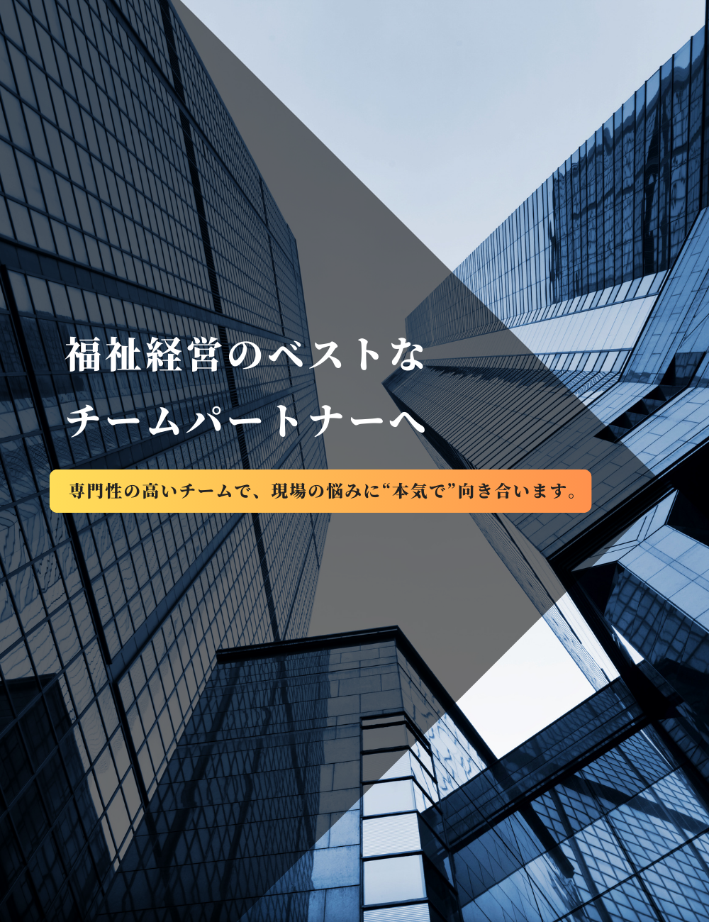 「利用が増えない」 「制度が難しい」「人が定着しない」「収益が上がらない」 「事業拡大ができない」「内部統制がうまくできない」そんな経営のお悩みに、福祉事業の経験をしてきた専門性の高いメンバーがチームで寄り添いながら支援を行っています。